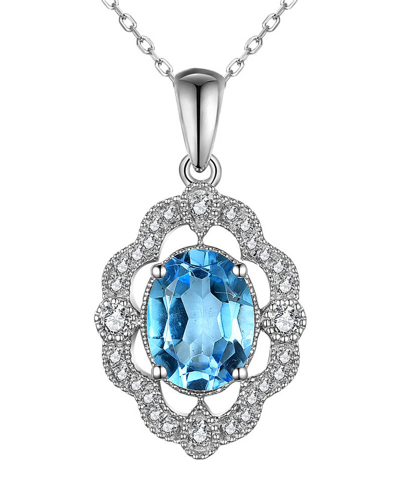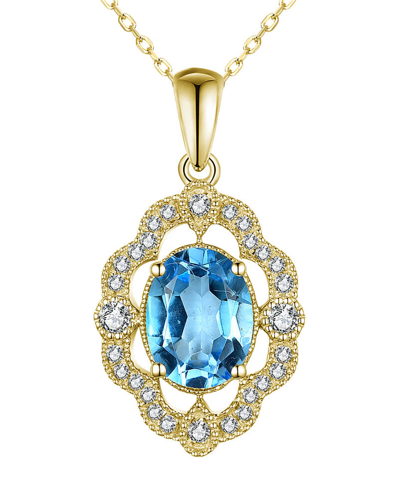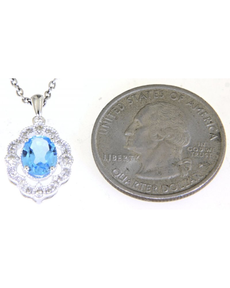 OVAL SWISS BLUE TOPAZ DIAMOND PENDANT