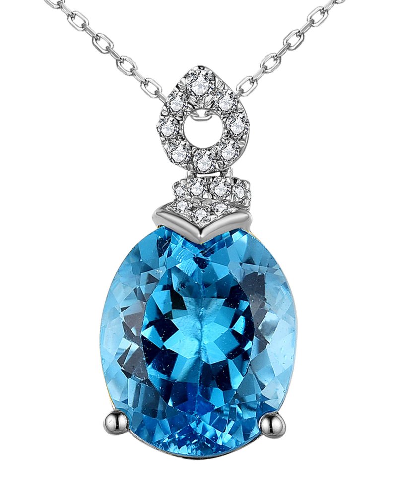 OVAL SWISS BLUE TOPAZ DIAMOND PENDANT
