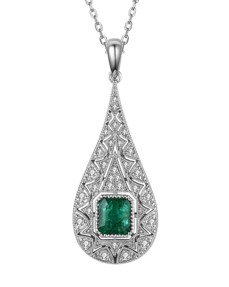 PEAR STYLE EMERALD DIAMOND PENDANT