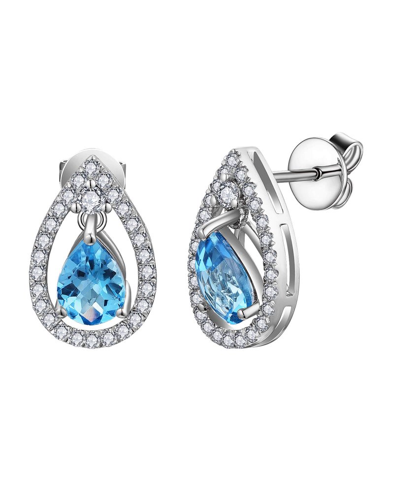 PEAR SWISS BLUE TOPAZ DIAMOND STUDS