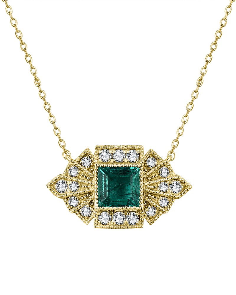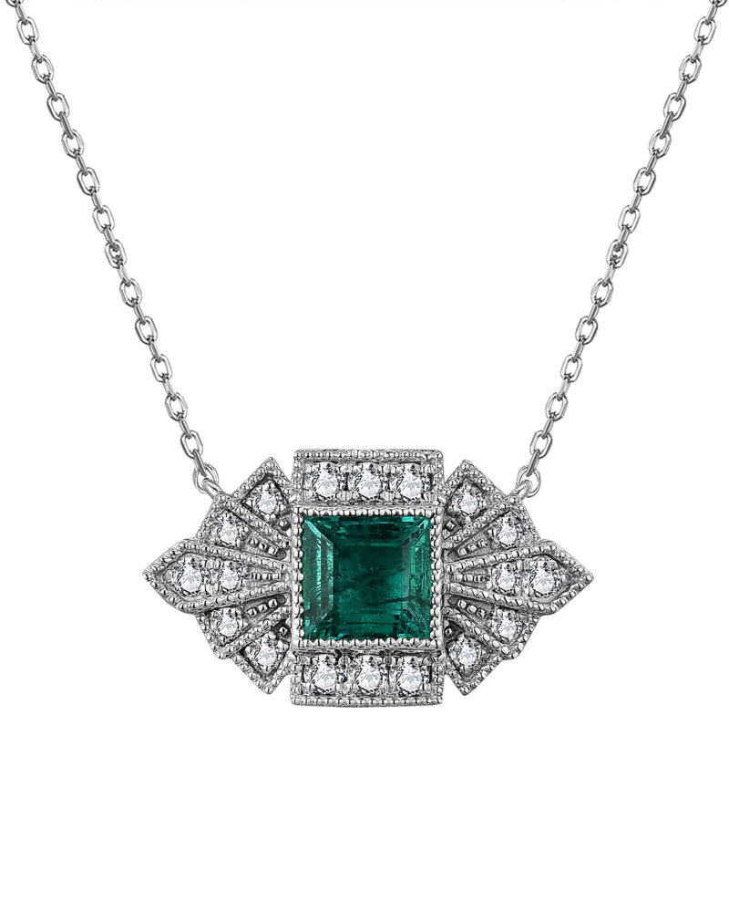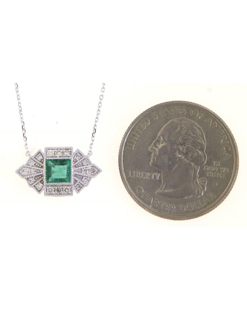 PRINCESS CUT EMERALD DIAMOND NECKLACE