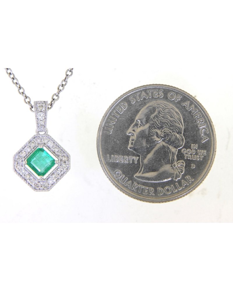 PRINCESS CUT EMERALD DIAMOND PENDANT
