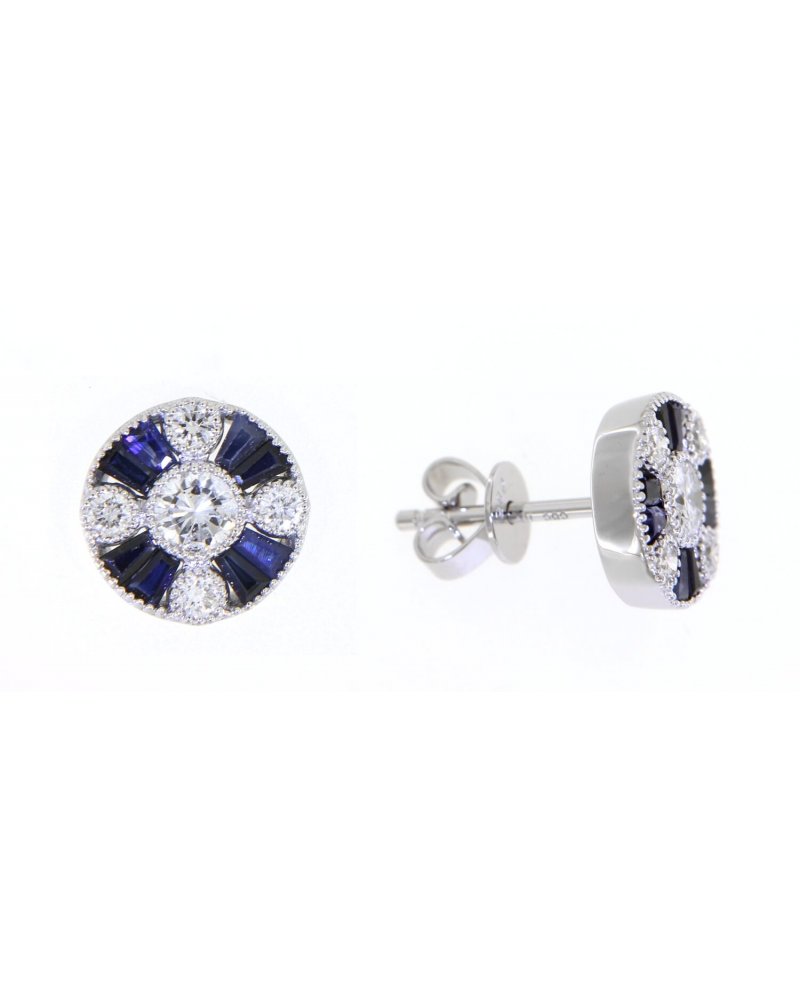 ROUND SAPPHIRE DIAMOND STUDS