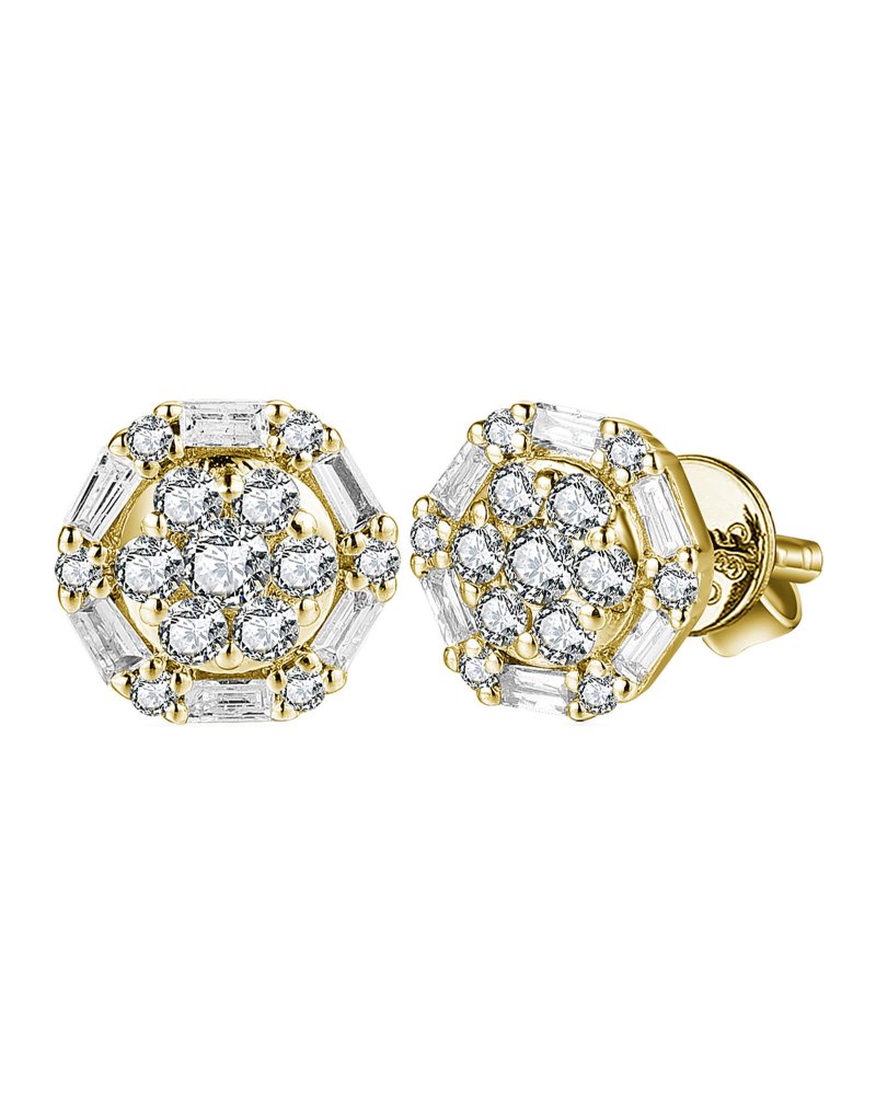 ROUND SHAPE BAGUETTE DIAMOND STUDS