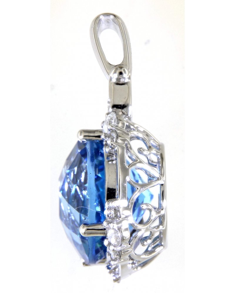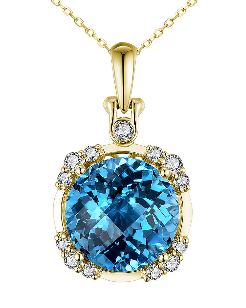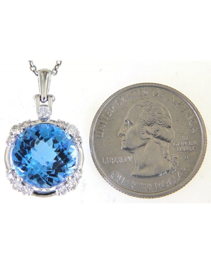 ROUND SWISS BLUE TOPAZ DIAMOND PENDANT