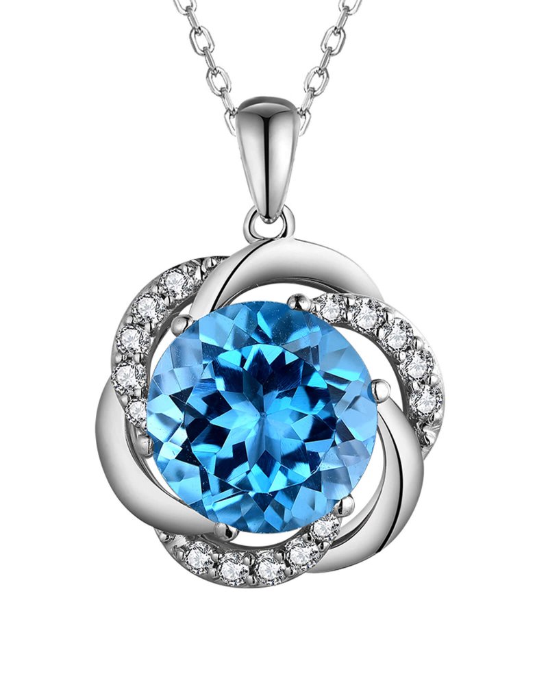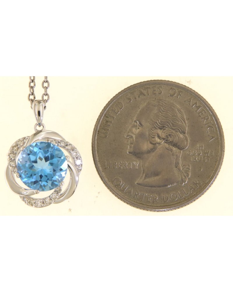 ROUND SWISS BLUE TOPAZ DIAMOND PENDANT