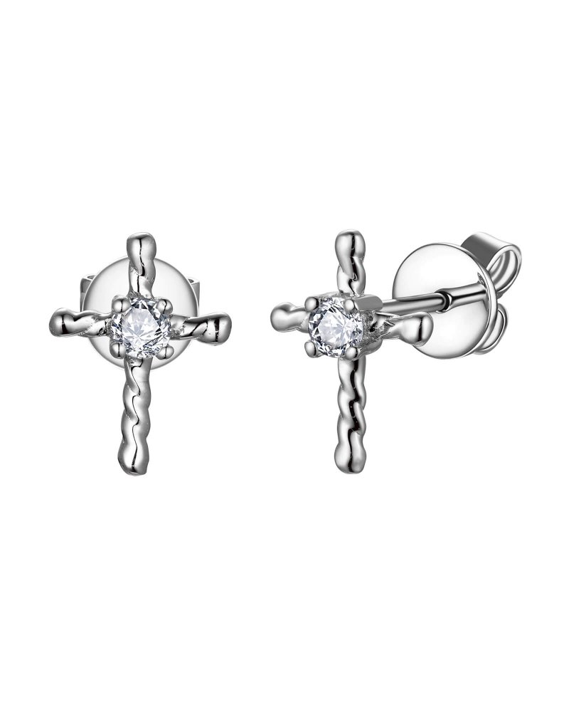 SOLITAIRE CROSS DIAMOND STUDS