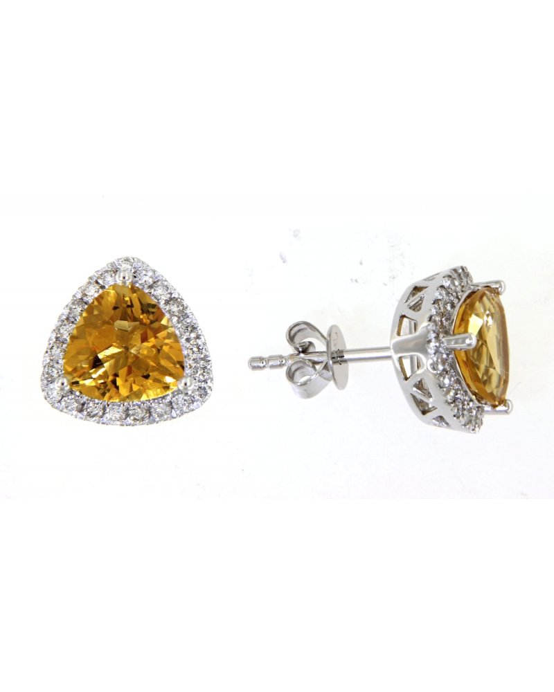 TRIANGLE SHAPE CITRINE DIAMOND STUDS